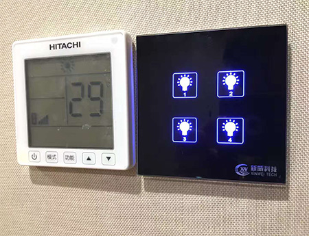 1、現場可編程開關面板控制,可通過程序設計的方式確定每個開關按鍵所控制的回路單鍵,可控制單個回路,多個回路,也可設置全開全關和場景模式。